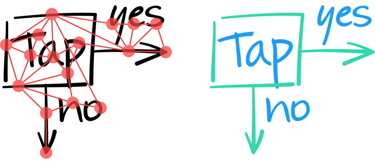 One layer in the GNN combines the features of a node with those of its neighbors to produce a vector of numerical values representing higher-level features. As with convolutional neural networks, several layers can be stacked to extract increasing numbers of global features – thereby enabling a more informed decision about whether a stroke constitutes a text stroke. For example, in the following diagram, the two leftmost vertical lines appear similar; it’s only by integrating contextual information from their neighbor strokes than the GNN can classify (at the output layer) that the leftmost stroke is part of a geometrical square shape, while the one beside it is part of the character ‘T’.