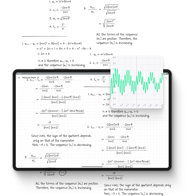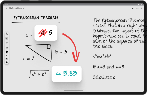 No more errors, focus on your math without second-guessing the results. With its super smart engine, MyScript Math reads all your handwritten equations accurately.